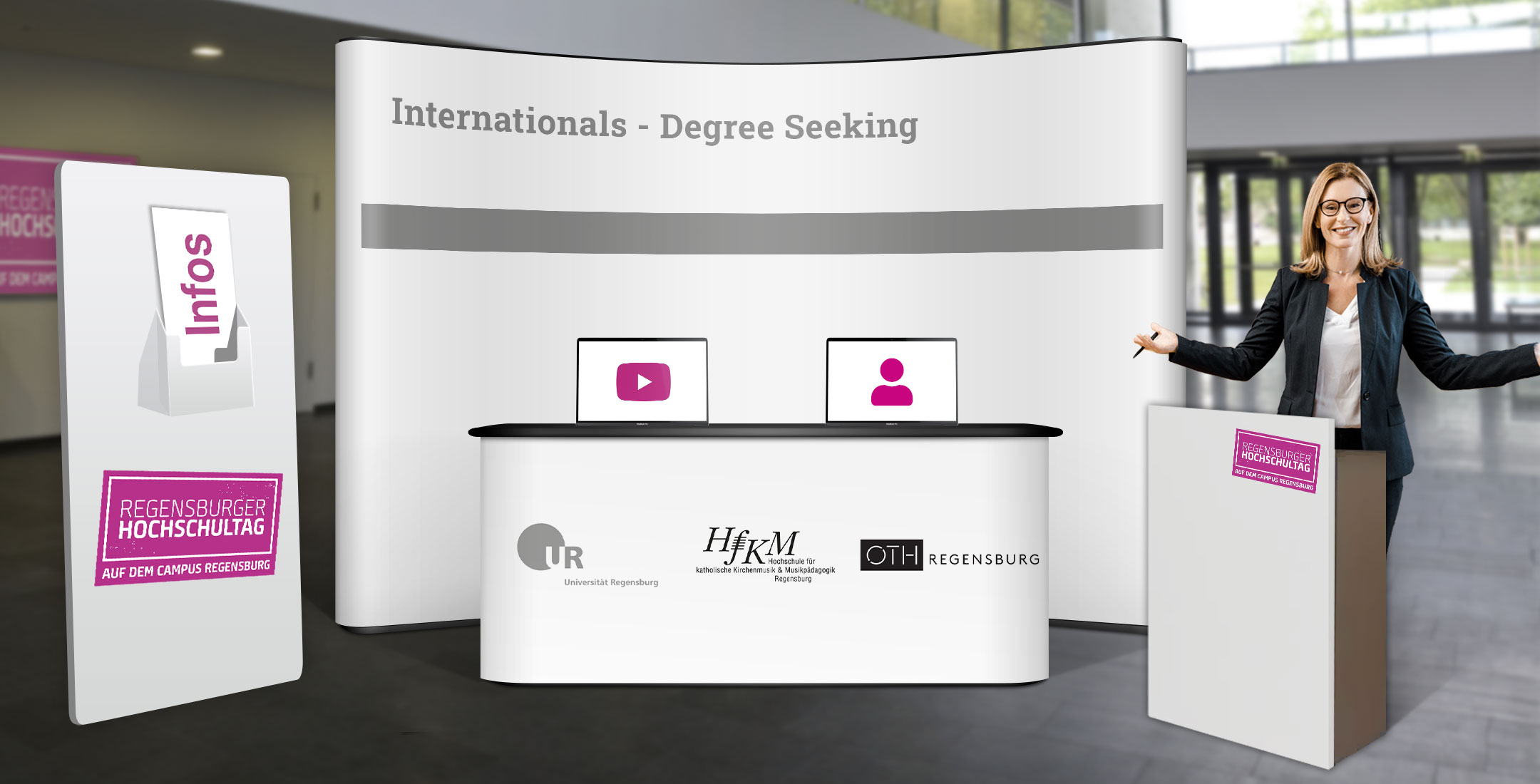 International students all over the world: You will find in our booth below helpful information about the general conditions and requirements for studying at the University of Regensburg and OTH Regensburg, which are important for you as a prospective student.